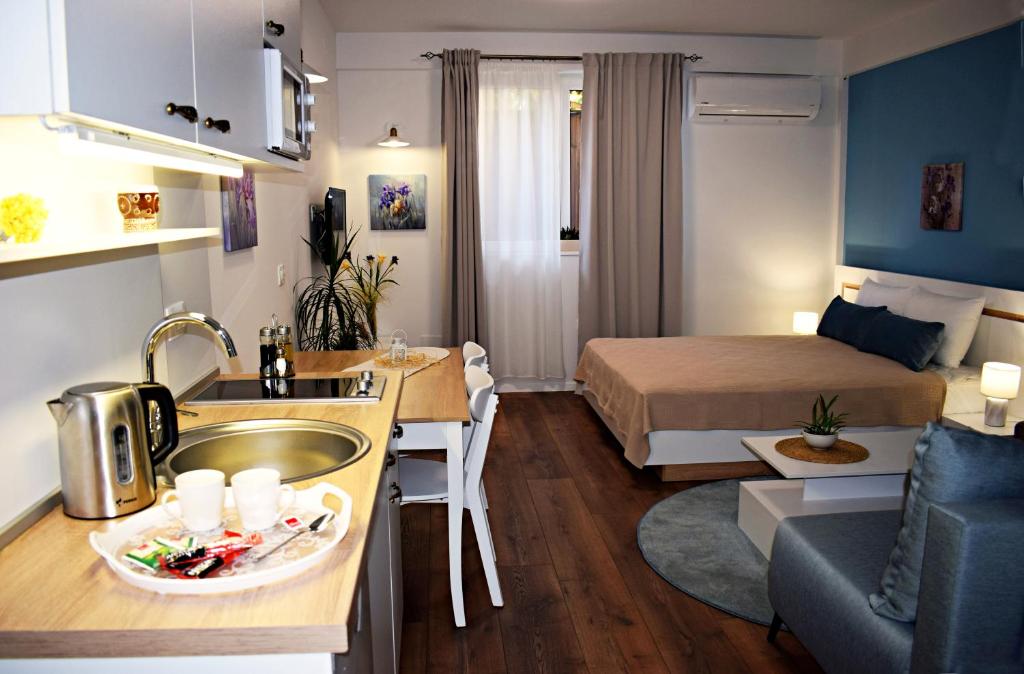 "The apartment with garden view is very beautiful and modern and clean. We parked our car in a private place in front of our apartment. Igor welcomed us and was very kind. The apartment has every small detail you need like salt oil kitchen towel etc. with essentials like pan, spoon etc.If i Come Ohri again, I stay here definitely.There was sitting place in the garden, it was great also."